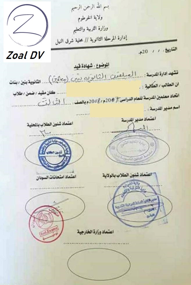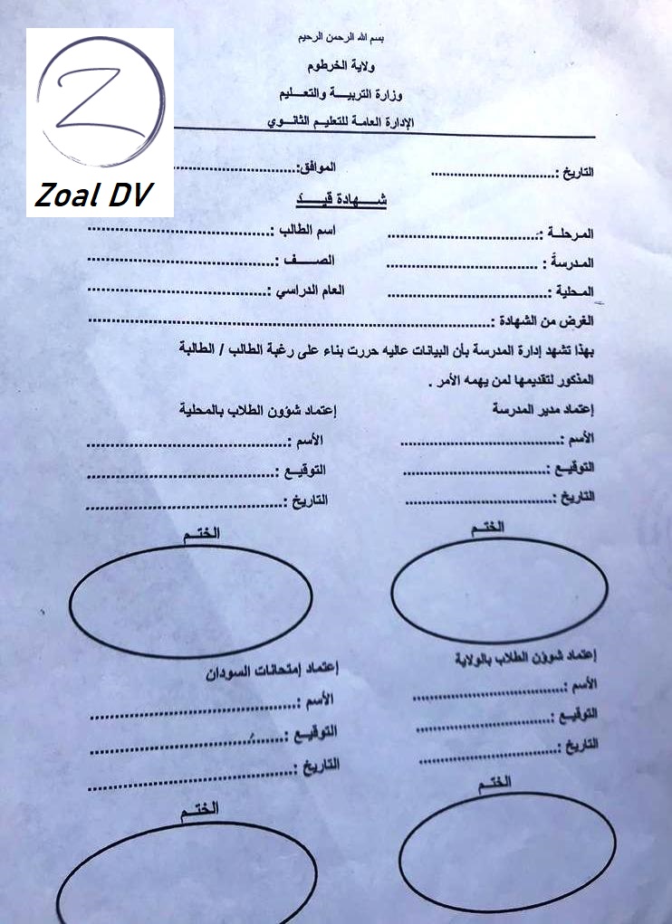 نموذج للشهادة السودانية باللغة العربية