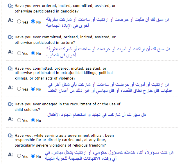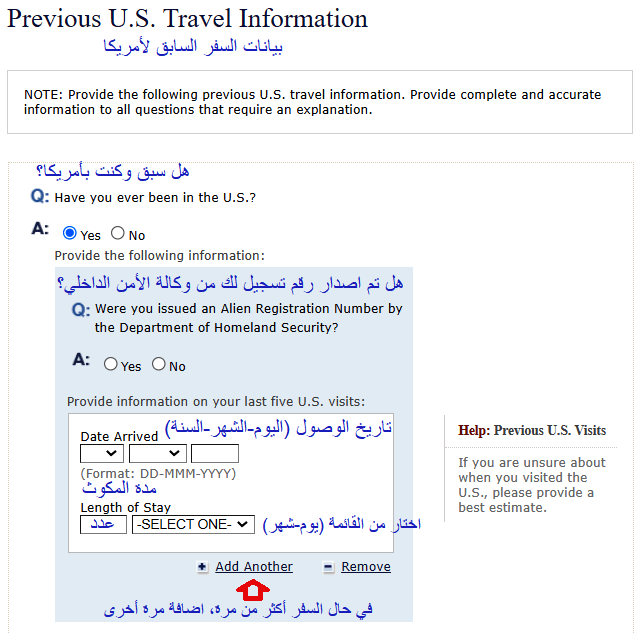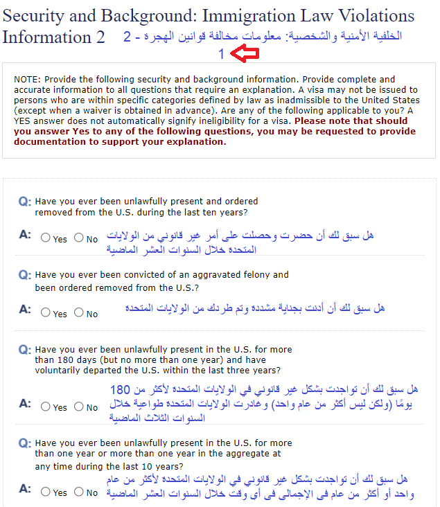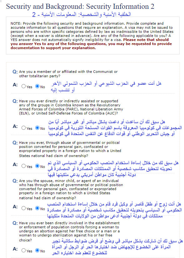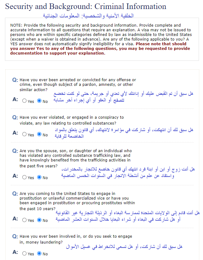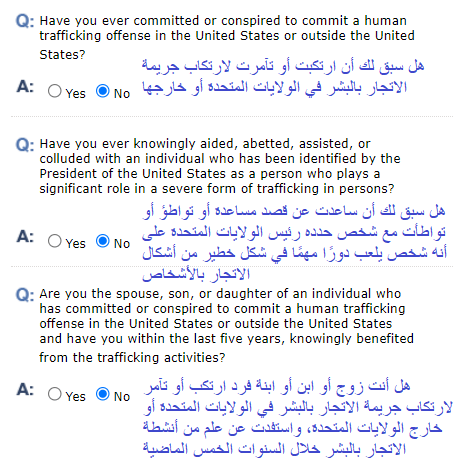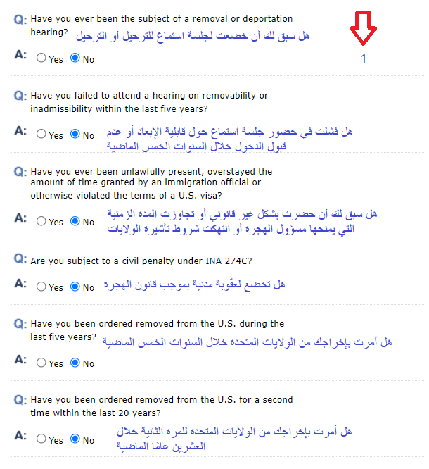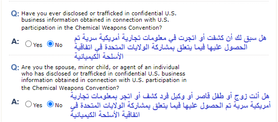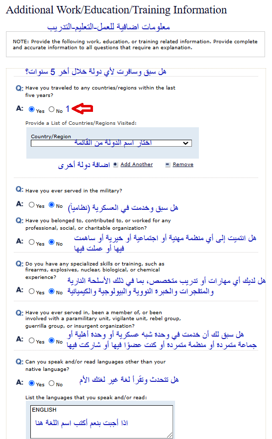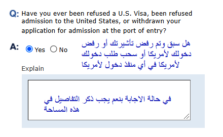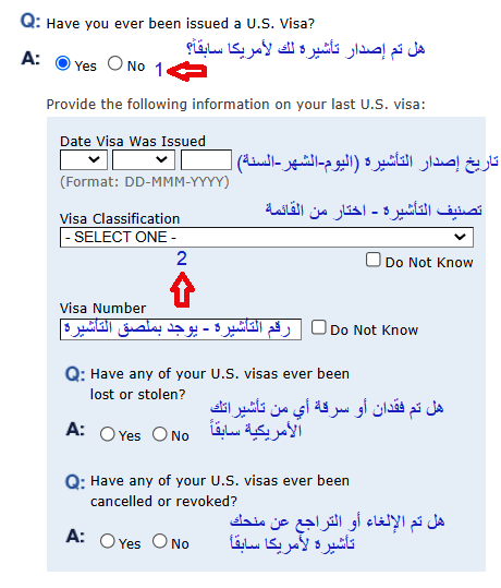 1- ستظهر لك هذه الأسئلة في حال السفر السابق للولايات المتحدة الأمريكية