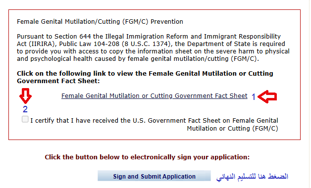 1- لكي يتم تفعيل الخطوة التالية والتسليم لابد من فتح الرابط الخاص بقانون ختان الإناث في الولايات المتحدة الأمريكية، سيتم فتح نافذة أو صفحة جديدة بها تفاصيل العنوان يجب بعدهاالرجوع لصفحة الدي اس لتكملة خطوات التسليم