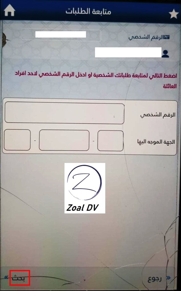 13- لمتابعة الطلبات يتم اختيار متابعة الطلبات في الفقرة رقم (4). ثم ادخال الرقم الشخص والجهة الموجه إليها.