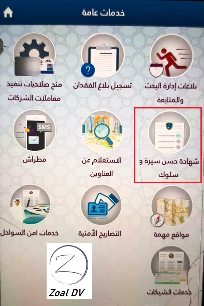 3- اختيار “الخدمات العامة” ثم “شهادة حسن السيرة والسلوك”.