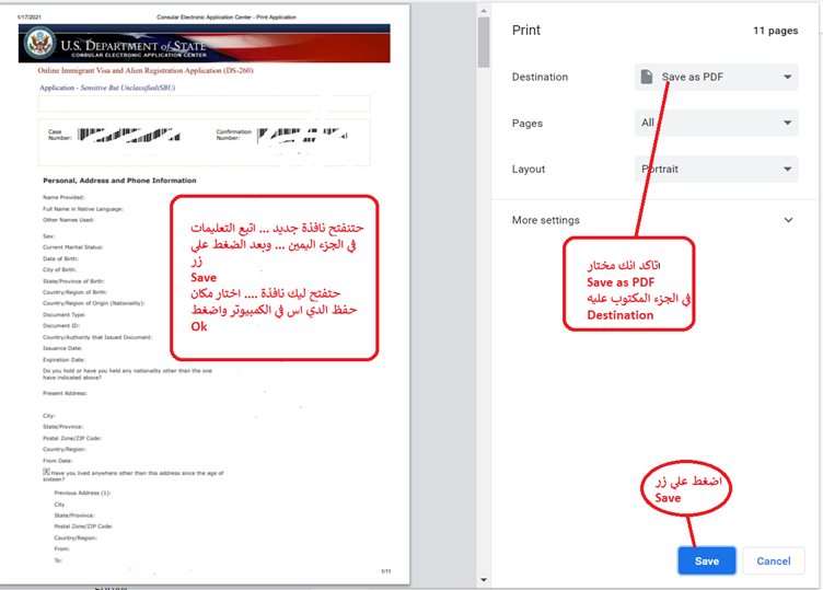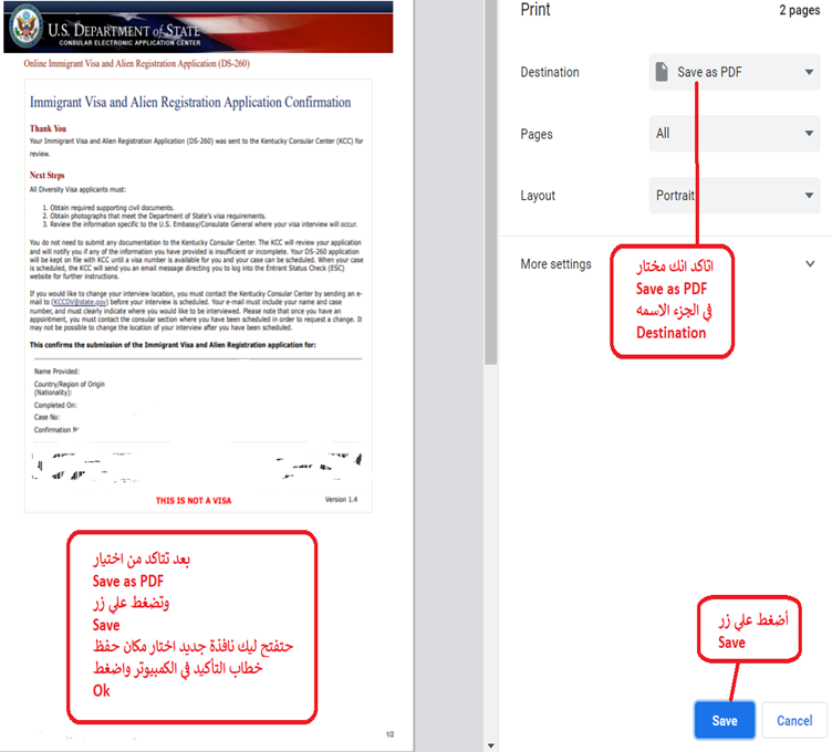 رابعاً: حفظ نموذج (DS-260) (Complete DS-260 Application) على الكمبيوتر أو اللابتوب