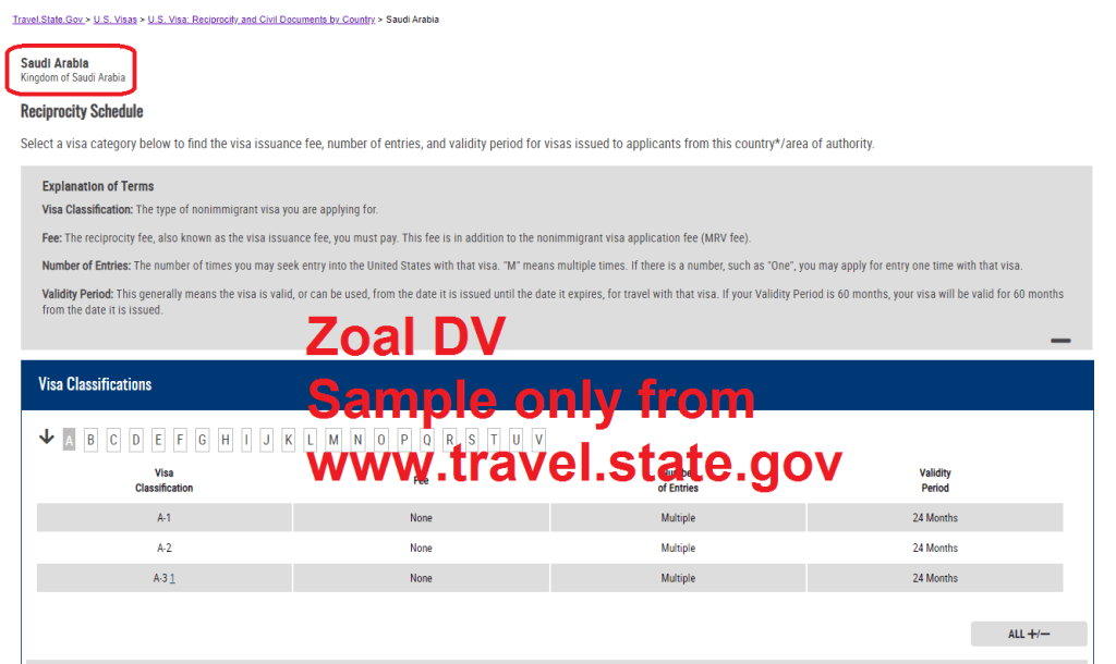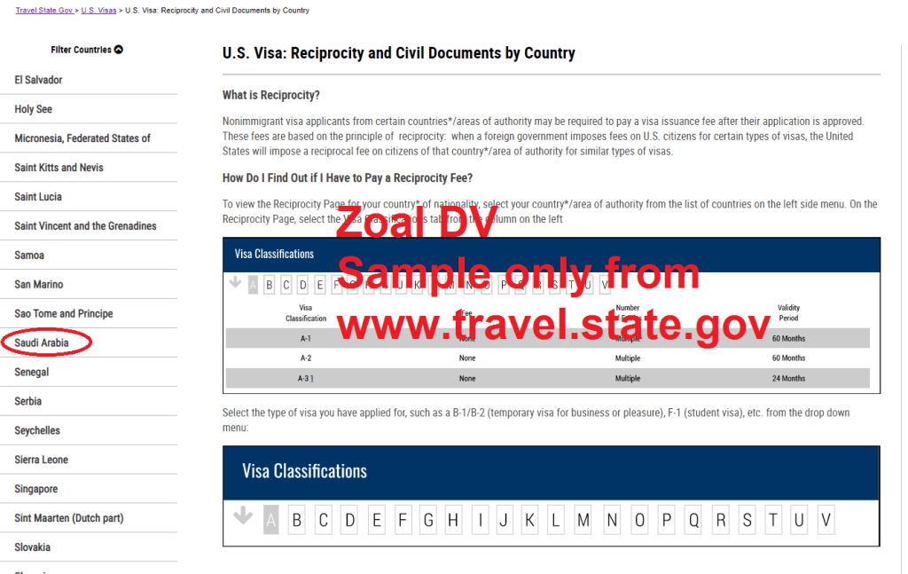 أولا: الدخول على القسم المُخصص بذلك في موقع وزارة الخارجية الأمريكية عبر الضغط على الرابط أعلاه أو الضغط هنا.