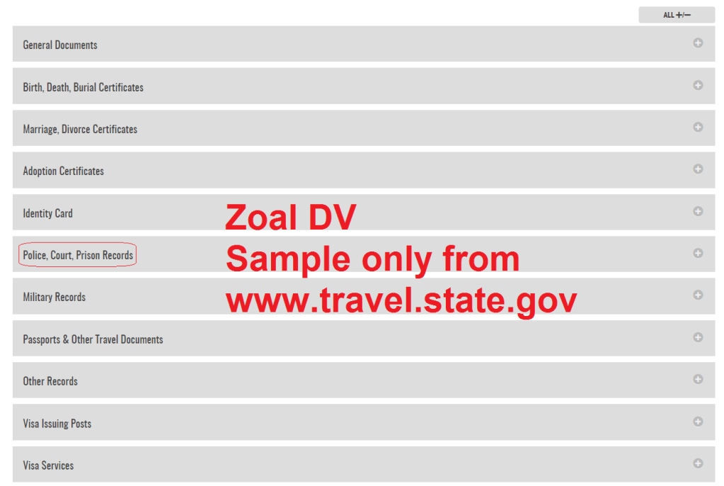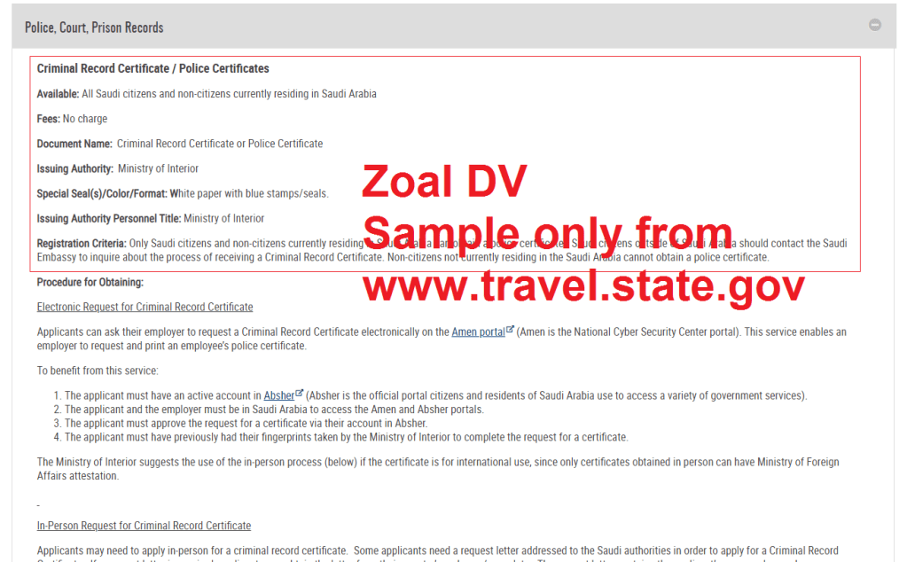 للحصول على إرشادات خاصة بكل بلد حول كيفية الحصول على شهادات (حسن السير والسلوك أو الحالة الجنائية أو الفيش)، راجع قسم وثائق الدولة في الموقع الرسمي لوزاة الخارجية الأمركية (www.travel.state.gov) عبر الضغط هنا واتباع شرح الطريقة أدناه: